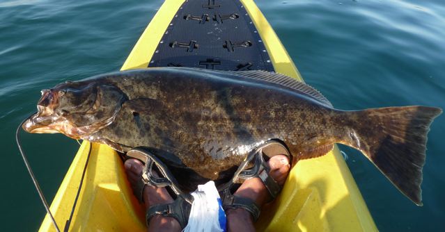 We drove to Lawrence St. to launch and found someone had parked right in the middle of the only two non-two-hour parking spots in Pt. Loma. We met another kayangler who had to come ashore after two hours to move his truck then went back to fishing. We wouldn't be able to do that so after much deliberating and consulting passers-by, we decide to take a chance and squeeze into the space in front of the other truck. A few paddle strokes after launch I dropped a dead squid and while we were still settling in I get my first strike. It turned out to be a nice spottie, which I released. http://www.flickr.com/photos/7083004...in/photostreamAttachment 5661 It looked like it might be good day to catch fish. Unfortunately, after four or five hours I had caught basically nothing, not even a lousy octopus. Even Sharon wasn't getting much attention so we decide to let the incoming tide take us in. At least it was another beautiful day on the water. At the end of the day, Sharon had caught a couple of C&R sculpin and a few lizard fish. My tally was one spottie, one greenback and two lizard fish. I hate fishing the bay. Oh, as Steve Jobs used to say, "one more thing"….. Attachment 5662 After we had pretty much given up, I went back to the squid. I dropped two lines and was doing whatever it is I do to fill the hours and days between fish, when the clicker gently gave a few clicks. I pulled the rod out of the holder and waited for some hint to come up the line. Nothing. I lifted the rod tip hoping to feel some tension. There was some small increase but it could have been the sinker in the mud. So I reel up the slack and the line pulls a little. Probably not another lizard fish but nothing much bigger. I pull up a little more. The fish pulls a little harder. I pull a little more. Now I've got some tension. I let Sharon know I've got something interesting on and steadily crank up line. Finally, the fish realizes something's not right and lets loose yanking my rod tip into the water and letting me know it ain't no bass. We went back and forth for a while when Sharon let me know I was drifting into the path of a another vessel. But it's no skiff. Not a sailboat. Not some big yacht. It's a warship. I really have to move. I wedge the rod under one leg and start paddling, dragging my but behind me. We play tug-of-war a little longer and I finally see color. My first thought, "Oh, shit. Sharon's going to be pissed". I was looking at a WCW point worthy fish. I bring the fish to the boat and it starts thrashing. I blindly swing the gaff into the froth. I miss but it's still on. The second time I get it right and sink the gaff into the fish's gill plate and heave it aboard. It must have been exhausted because it didn't move again until half an hour after I bled it. Creepy. I wonder if human corpses ever do that. A friendly guy in a skiff comes by to take a look and offers to weigh my trophy. Twenty one and a half pounds. (On solid ground it just topped 22 and measured 37"). Thanks to whoever that was. I gave him one of my last squid and wished him luck. I don't know about him but Sharon was lucky, too. There was no parking ticket on her truck at the end of the day. Despite my PB halibut, it was still a slow fishing day. But I am not complaining. Attachment 5663 Tight lines! PS - Sharon shot some video but she said something about her competitors and ask that I hold off posting it. So look for it later. |