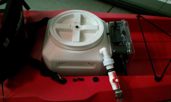 Ok. So to answer the questions, I don't know what size the pump is. I bought the unit all set up at OEX. So what you are saying is my 12v battery that I am using for both my FF and my bait tank is too much. I keep hearing that. So best case, the bait tank needs its own battery. What is an aerator head and where does it go? What is a pvc ball valve and where would it go? The out take hole and hose is about 3/4 of the way to the top of the bucket.