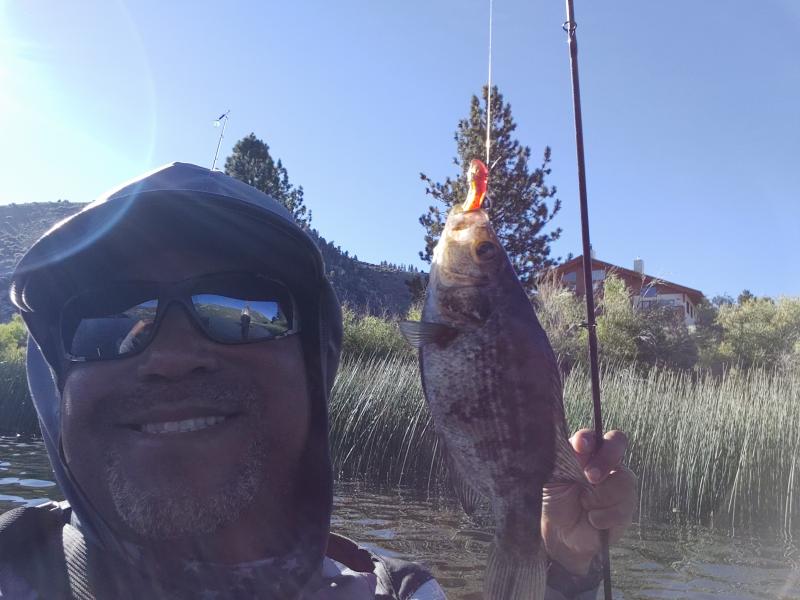 Spent the weekend fishing Gull Lake off of the June Loop and Rock Creek Lake in the Sierras. Not to much action due to the erratic wind shifts. The fish where there but just weren't biting. I did manage to land a 2 pounder at Gull Lake along with some small Sacramento Perch using 1/4 and 1/8 size hookup baits in the sardine and red colord. I also managed to land 1 pansized trout at Rock Creek Lake. I lost a fish of a lifetime at Rock Creek as well while using a Pink Tasmanian Lure. Fish took of like a rocket and broke my fishing line. I lost my lure as well oh well.:reel::paddleersmilie:Attachment 25316