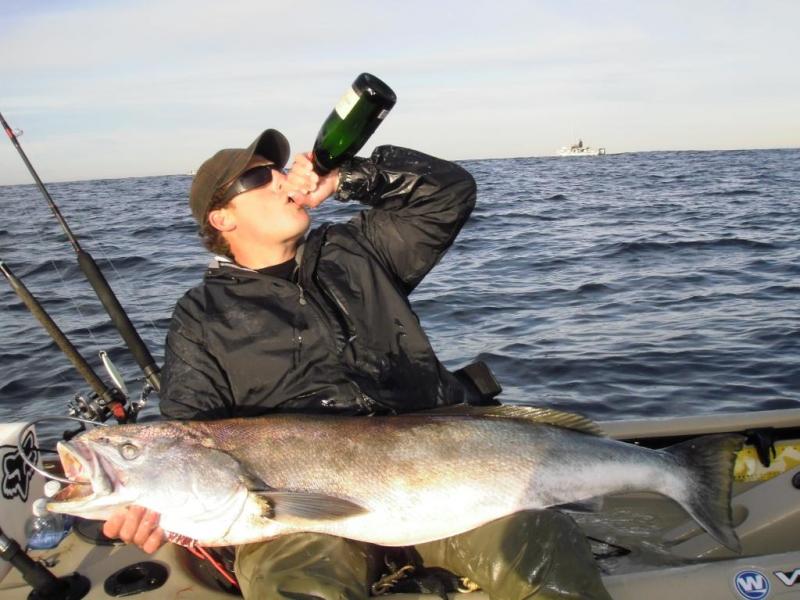 I arrived a little late to the launch on New Year’s Day. As I peddled past Eric with his beautiful WSB strapped to the back of his kayak, I was encouraged and hopeful that my day might end up in a similar fashion. I had not been on the water for more than a month and had missed the big bite that occurred in mid December. Based on all the chatter I had picked up, I figured that my best chance for success on this day would be yo-yoing some iron. So that is what I did. No love. About an hour in, I ran across the Darkhorse, making bait. I asked him if he was planning to fish with bait. His typically cryptic response was that he wanted to have some bait on hand, “just in case”. That seemed reasonable to me so I decided to do the same. My first fish of the year was a 6” Spanish mackerel. Would this be my largest catch of the day? At least I was catching something so I filled the tank with a dozen or so macks, including a few greenies. By this time most of the dawn patrol had given up and gone in empty handed. There were only a couple of us remaining along with several PBs. The weather was spectacular as I watched a couple gray whales cruise through the fishing grounds. I pinned on one of the greenies along with a slip sinker and sent my bait to the bottom. After about 15 minutes of slow trolling, my bait started getting nervous. There was a bump, then another and then suddenly my line started peeling off the reel. I put the reel in gear and was rewarded. FISH ON! I knew that it was big, but what kind? This fish fought hard. At first there were some very strong runs with a few angry head shakes thrown in. There were many minutes where we were at a stand-off. The fish was no longer taking line but I could not gain any ground either. About fifteen minutes into the battle, I was able to start making headway and retrieving some line. It started slowly but then became easier. At times, it felt like I was hauling up dead weight, like a big chunk of kelp. Suddenly, the fish got new life. The reel was screaming as this thing headed for the bottom again. Then, just as suddenly the run stopped and I was reeling up dead weight again. What in the world had I hooked? We played this game a couple more times until about twenty minutes into the fight, I saw color. It was big. Easily the biggest fish I had ever hooked. Could I land it? All of a sudden, there was hardly any resistance. I could still see the fish was still hooked but the fight was over. I quickly reeled in the last 25 feet and when the fish came to the surface, it rolled belly up. Catching a fish this big is new to me but I was fairly certain that in most cases getting the fish to the boat was only half the battle. I would have to carefully aim my gaff strike and hope that the fish would stunned enough so I could haul it onto my kayak. Not this time. As Jay, the lone other kayker in the area closed in to check out the action, I simply grabbed this beauty by the gills and lifted it onto my lap. There was no need to use the gaff or even a club. I had landed my first White Sea Bass. With Jay’s help, we secured the fish to the game clip and strapped it to the back of my Revo. I have no idea how I would have been able to accomplish this by myself. Thanks Jay for coming to my rescue and for the great photos. This fish tipped the scales at 38 pounds. It was not only my first WSB but the largest fish I have ever caught. For a few short hours, it was probably the largest fish caught this decade in La Jolla. As I peddled in, I noticed that the Darkhorse was still out there fishing so I am sure that this record did not last very long. Attachment 1806 Attachment 1807 What a way to start off the new year. Bob |